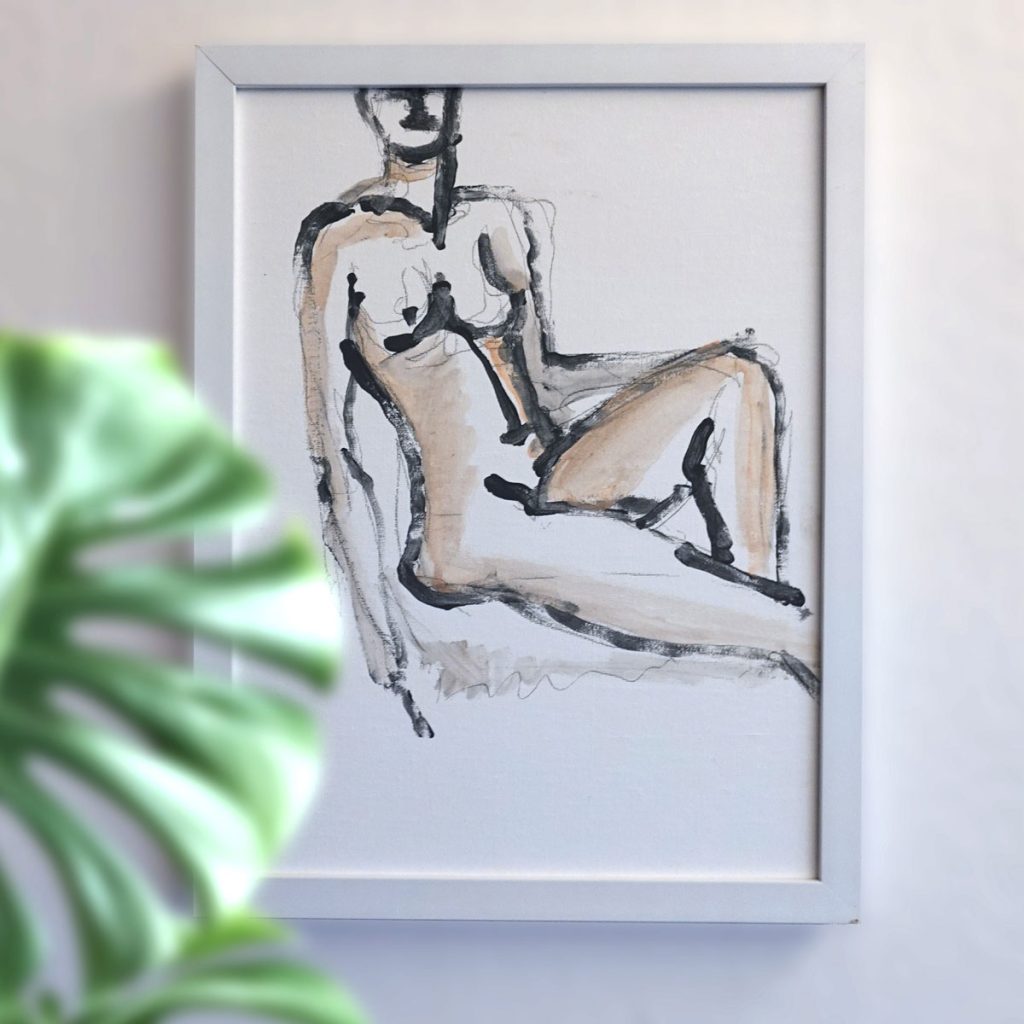 2024: Akt_Frau_GrauBeige_Sitzend_30x40cm