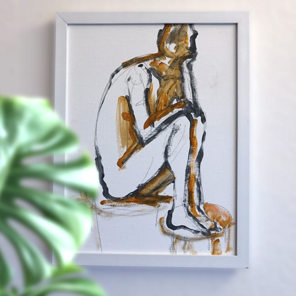2024: Akt_MannSitzend_AcrlBeige_42x59,4cm