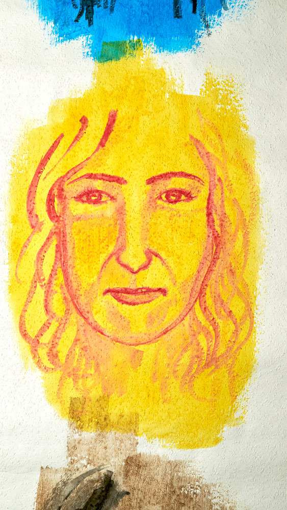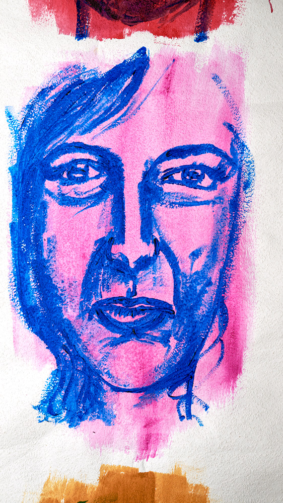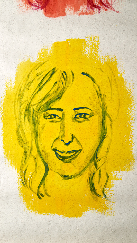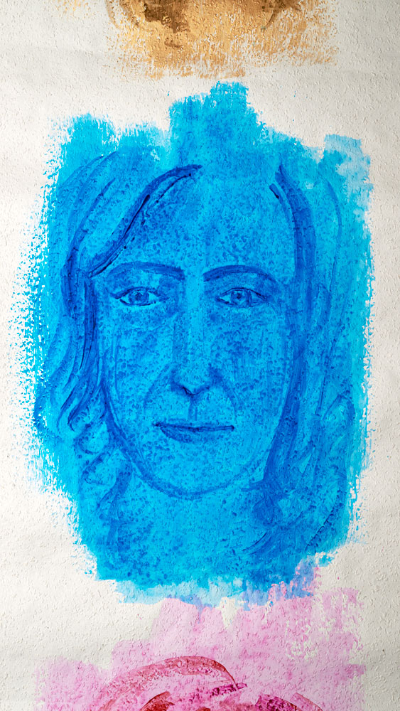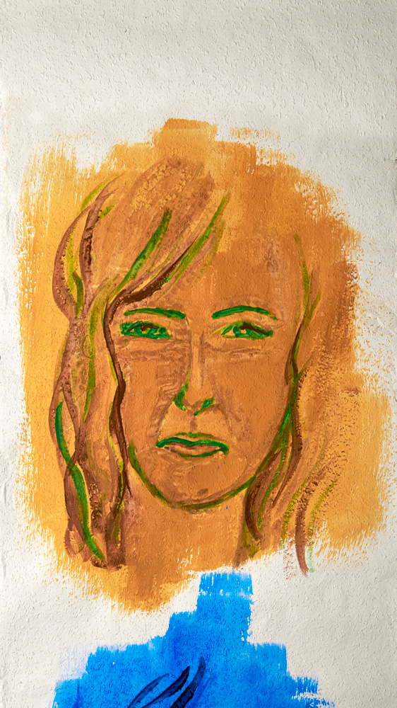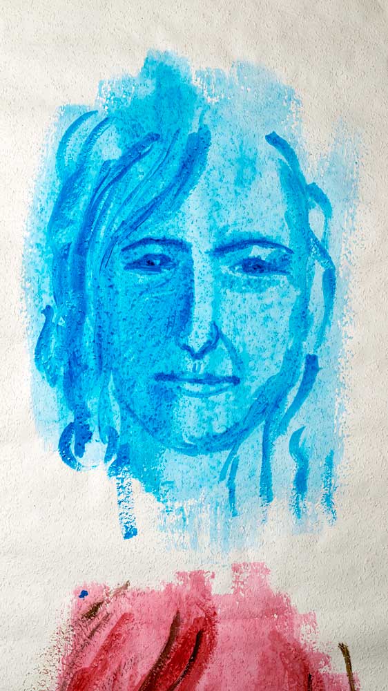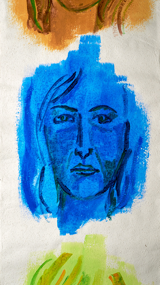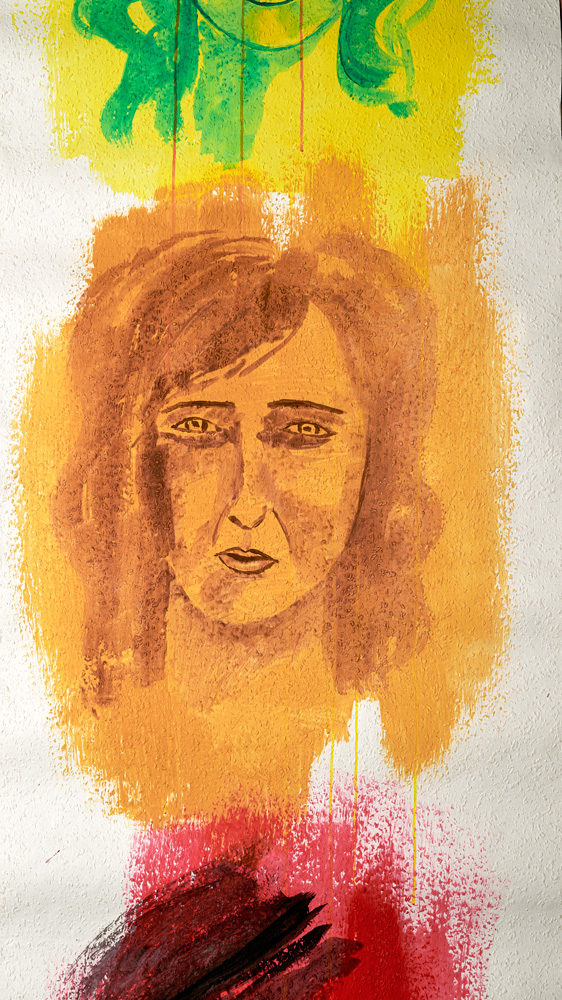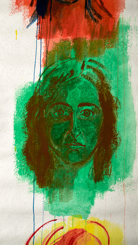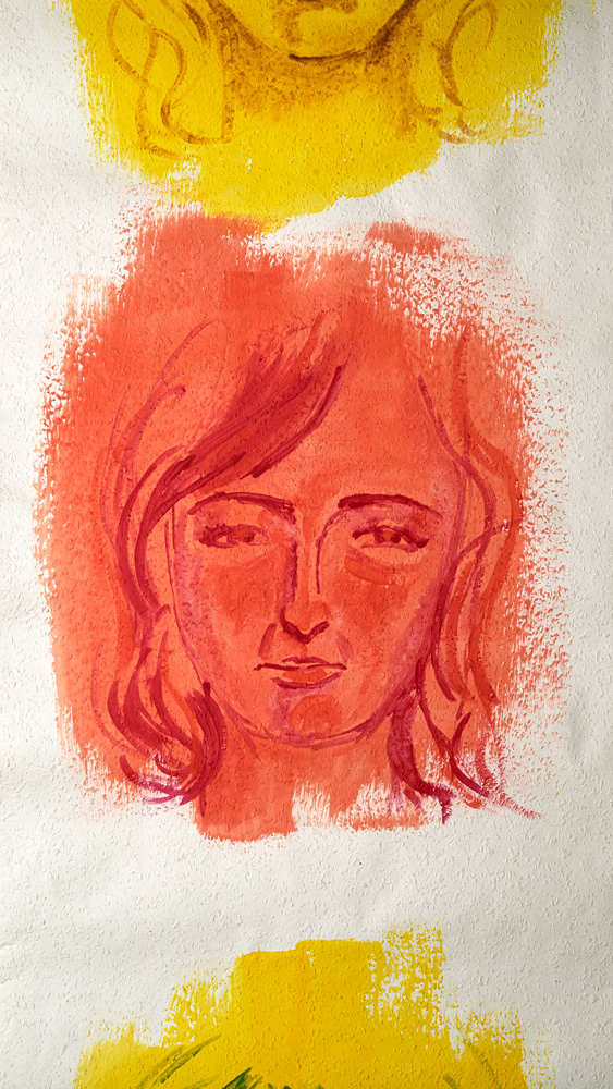 Selbstportraits auf Tapetenrolle fortlaufend. Gefühlsportraits: während des Malens hat sich das Gefühl manchmal verändert oder transformiert. Es konnte gesehen werden und durfte da sein.