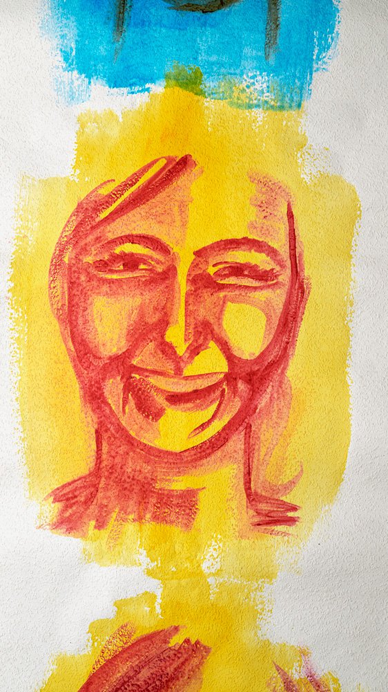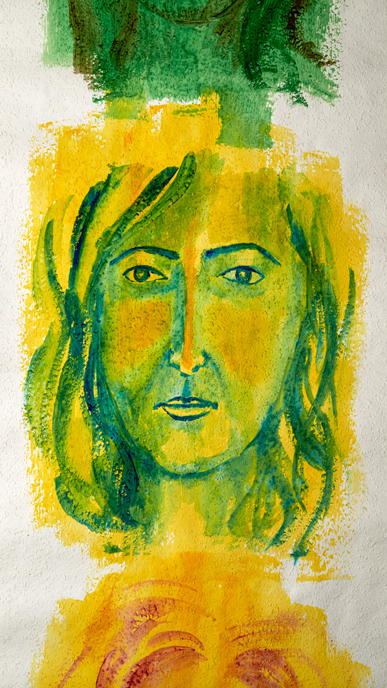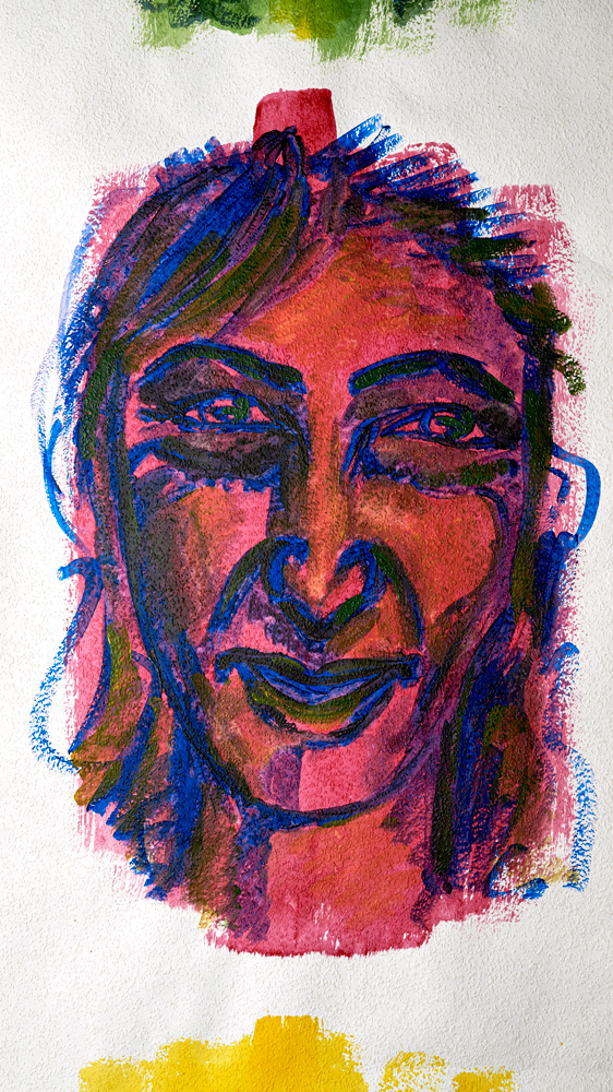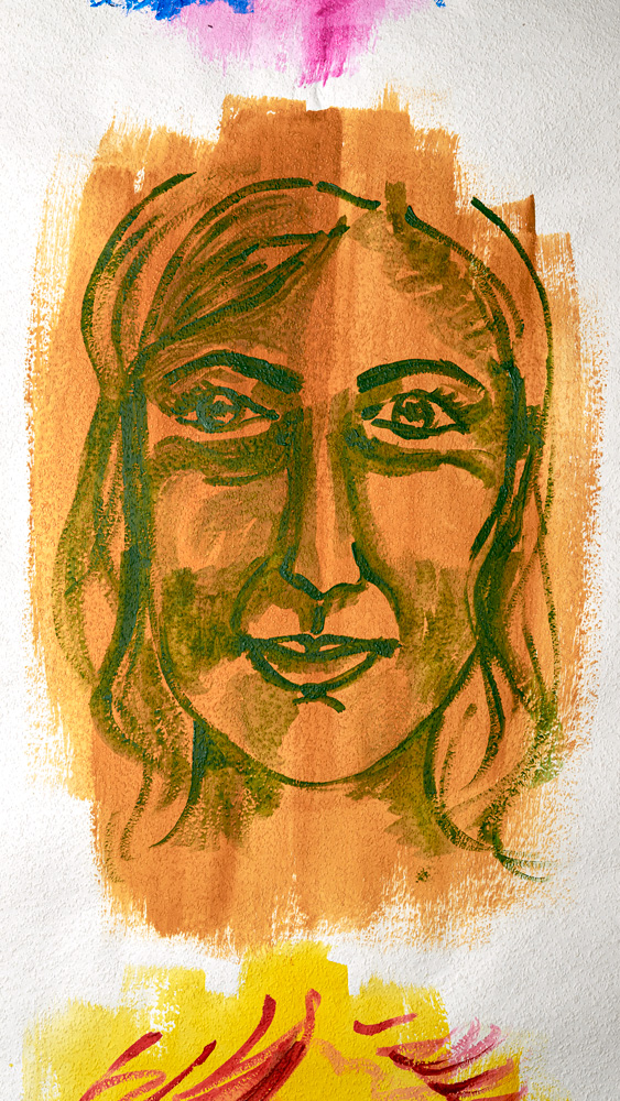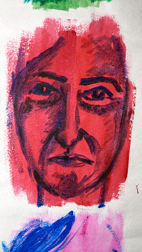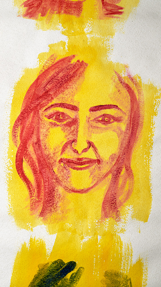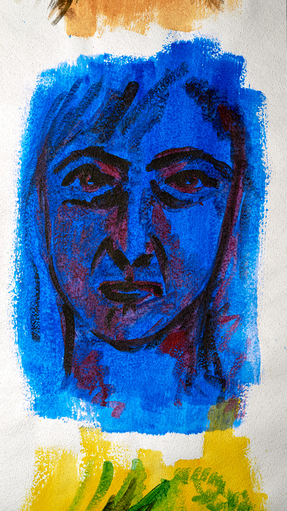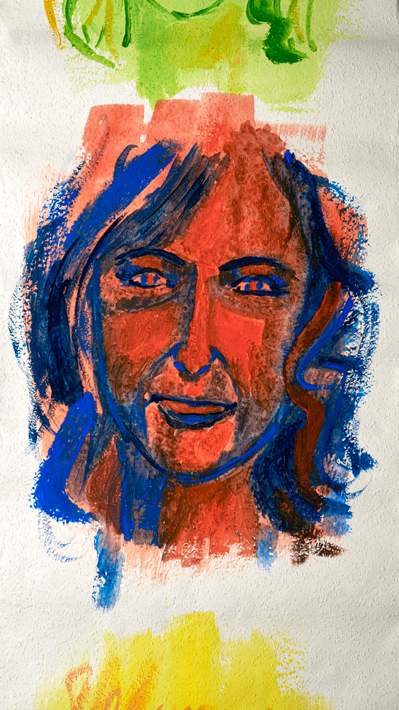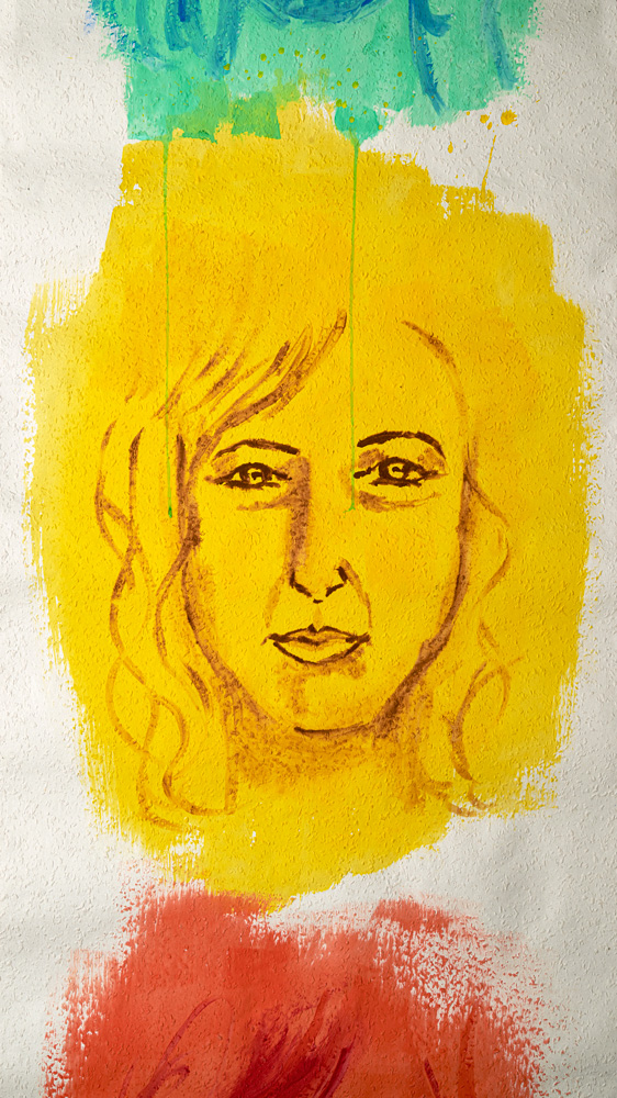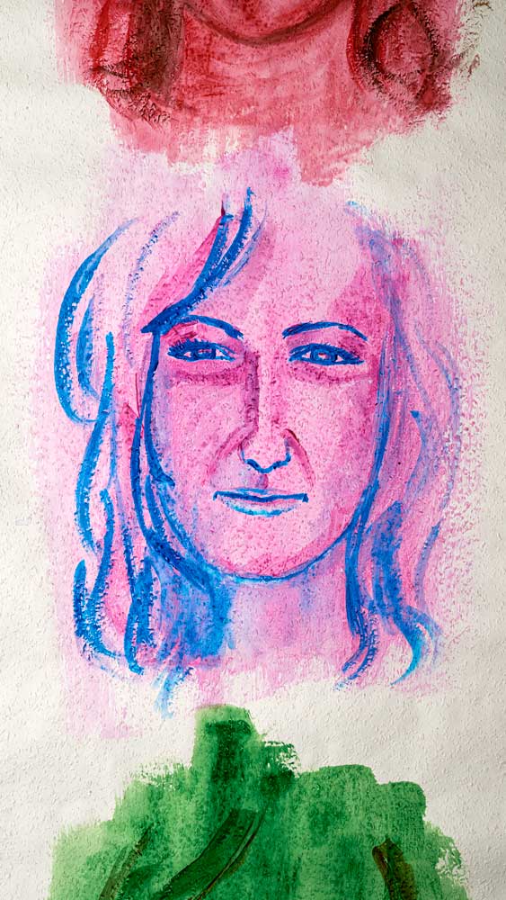 Selbstportraits auf Tapetenrolle fortlaufend. Gefühlsportraits: während des Malens hat sich das Gefühl manchmal verändert oder transformiert. Es konnte gesehen werden und durfte da sein.