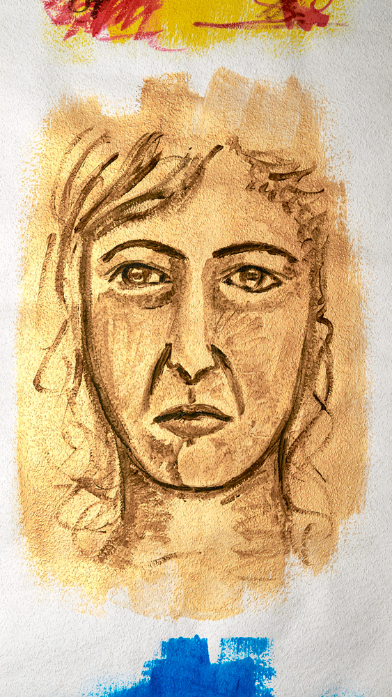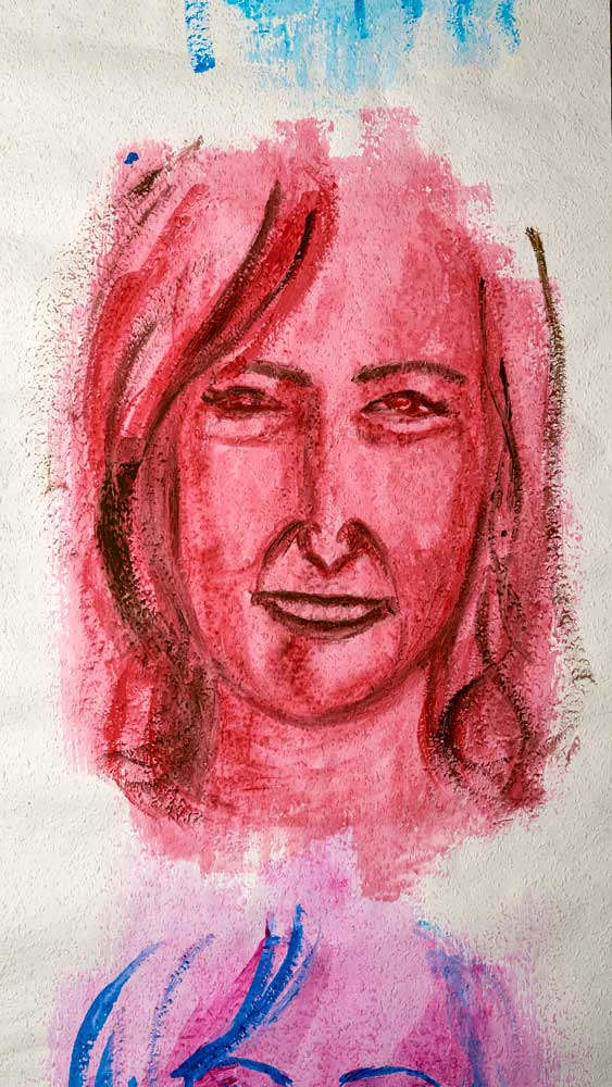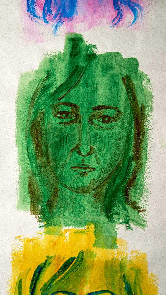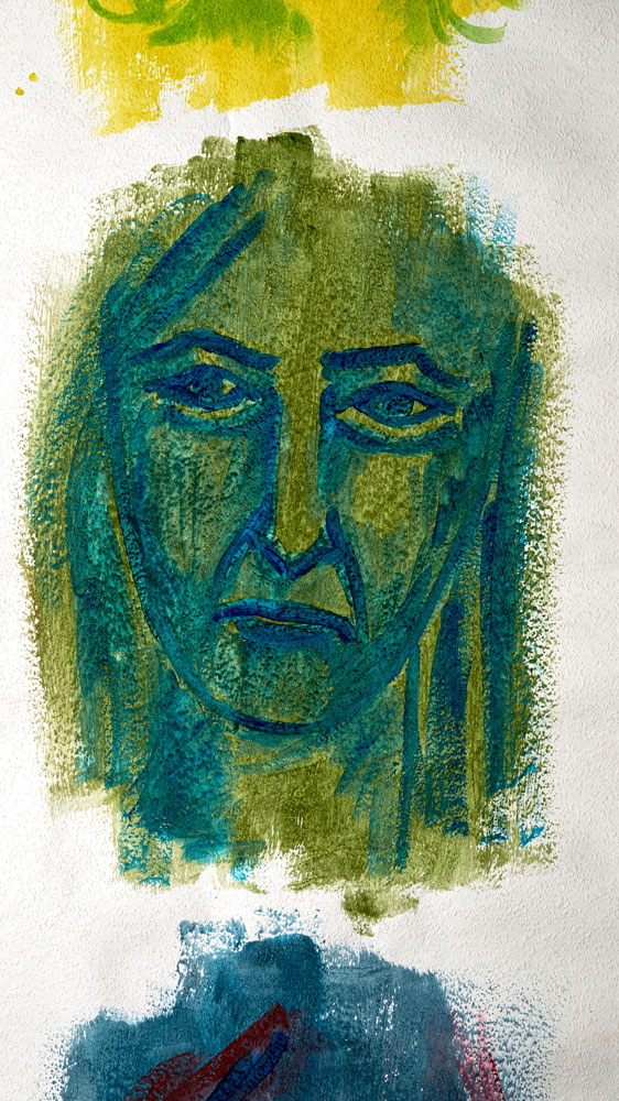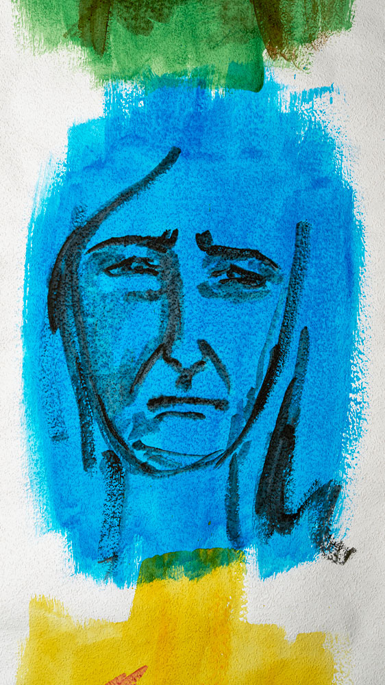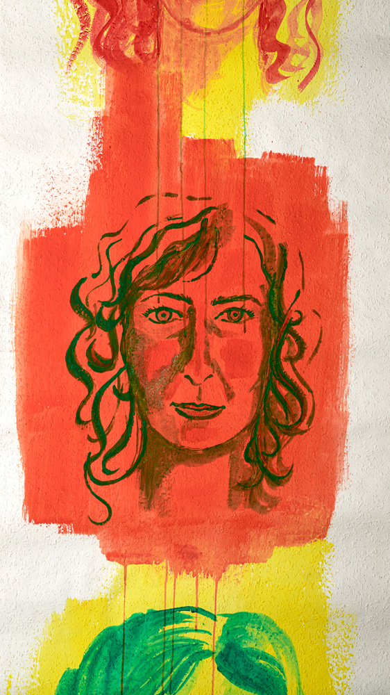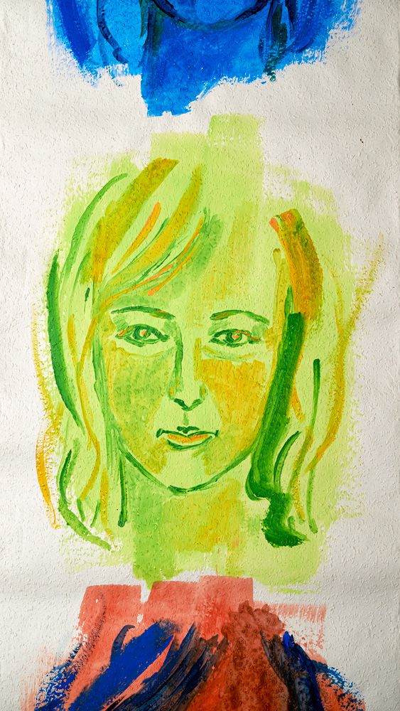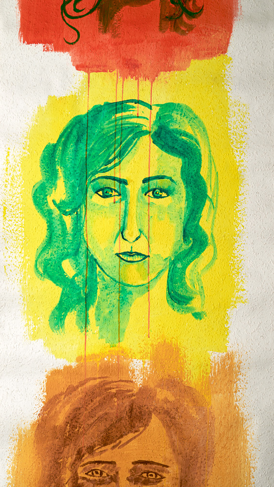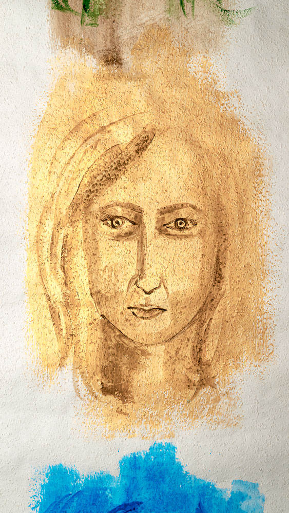 Selbstportraits auf Tapetenrolle fortlaufend. Gefühlsportraits: während des Malens hat sich das Gefühl manchmal verändert oder transformiert. Es konnte gesehen werden und durfte da sein.