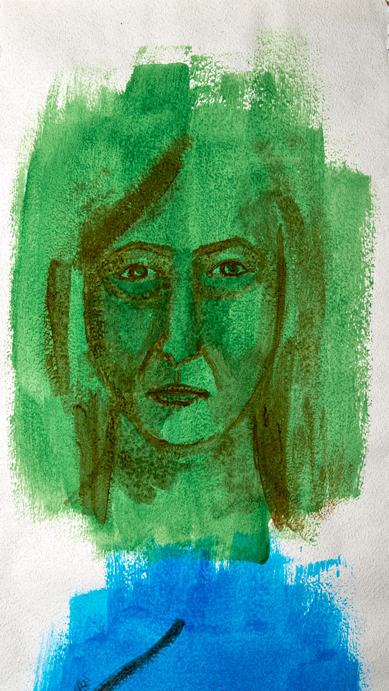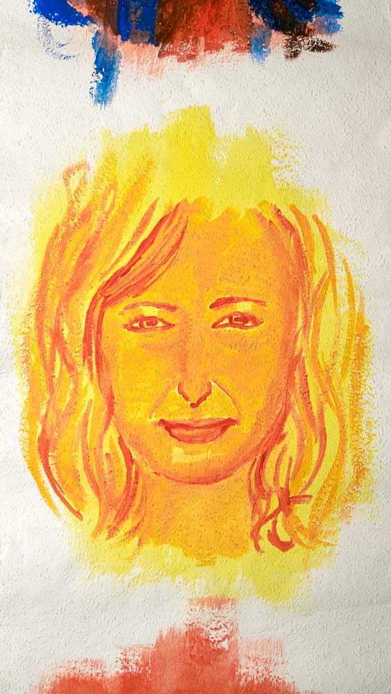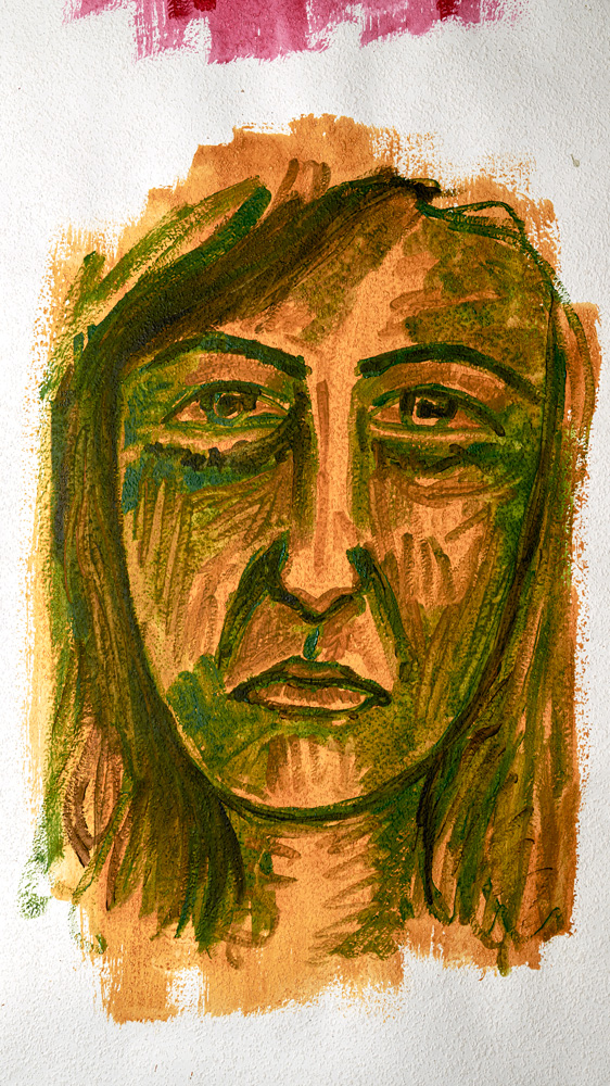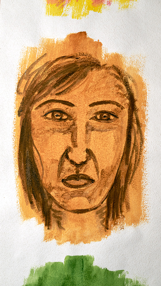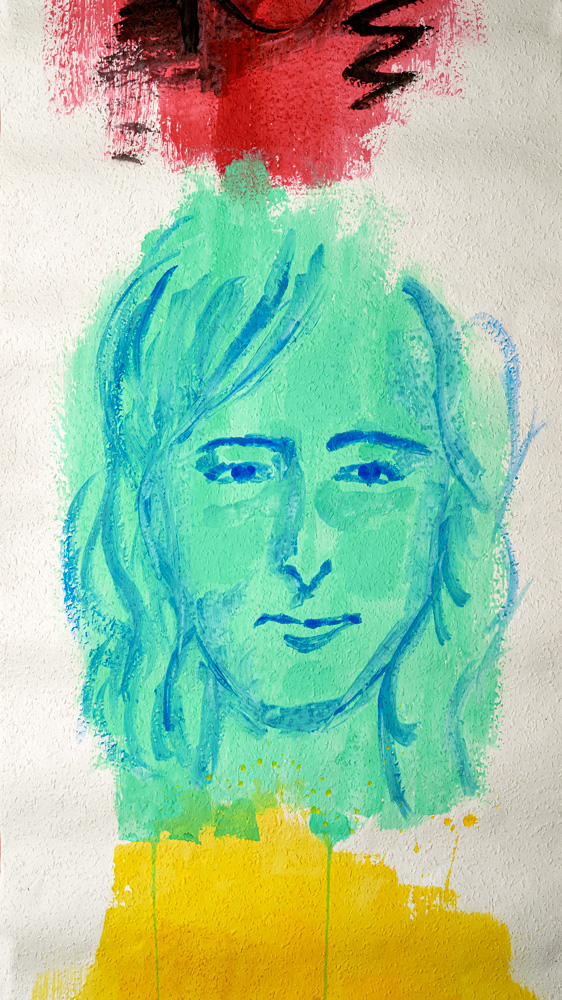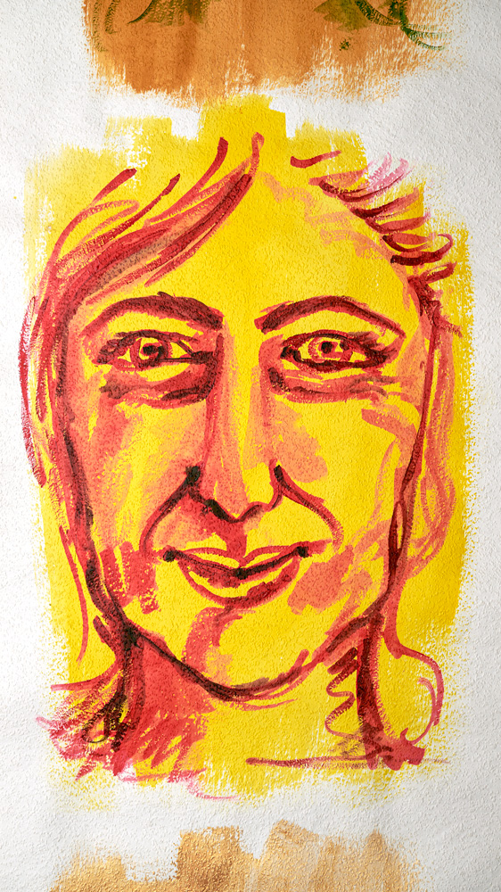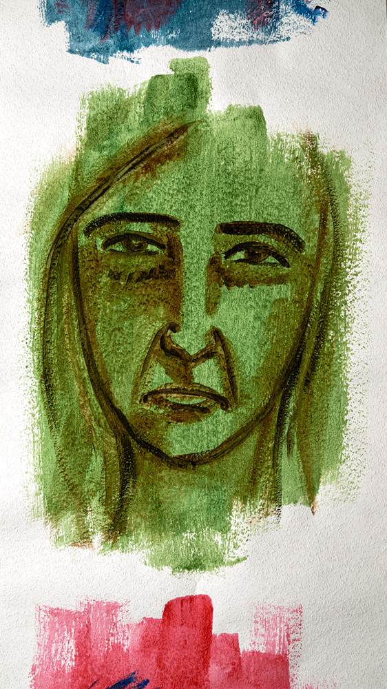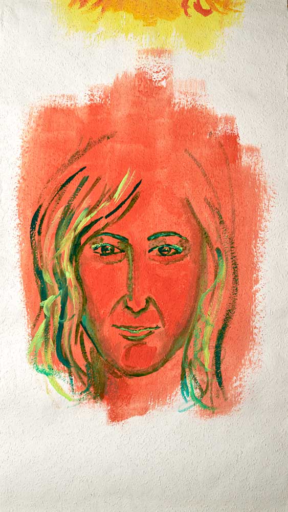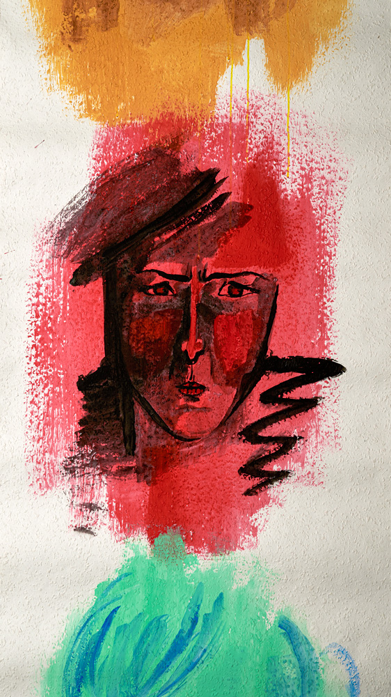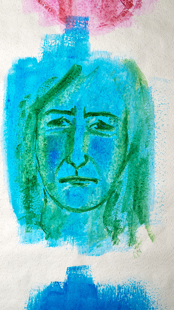 Selbstportraits auf Tapetenrolle fortlaufend. Gefühlsportraits: während des Malens hat sich das Gefühl manchmal verändert oder transformiert. Es konnte gesehen werden und durfte da sein.