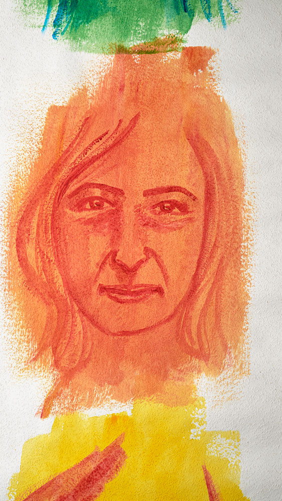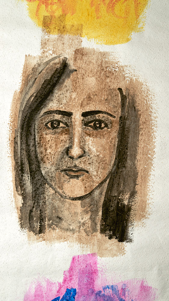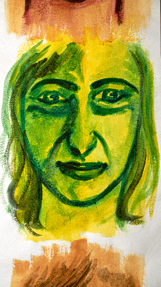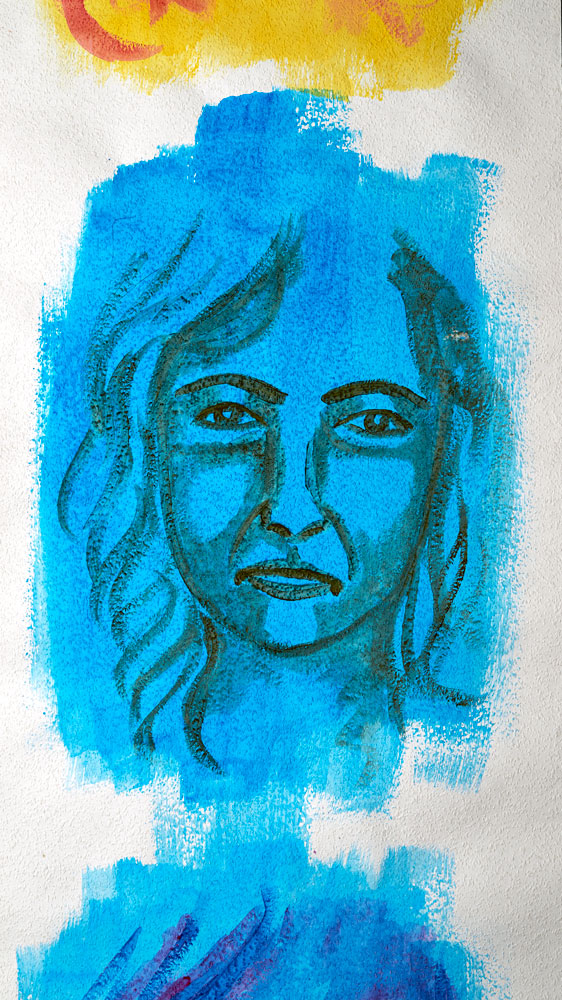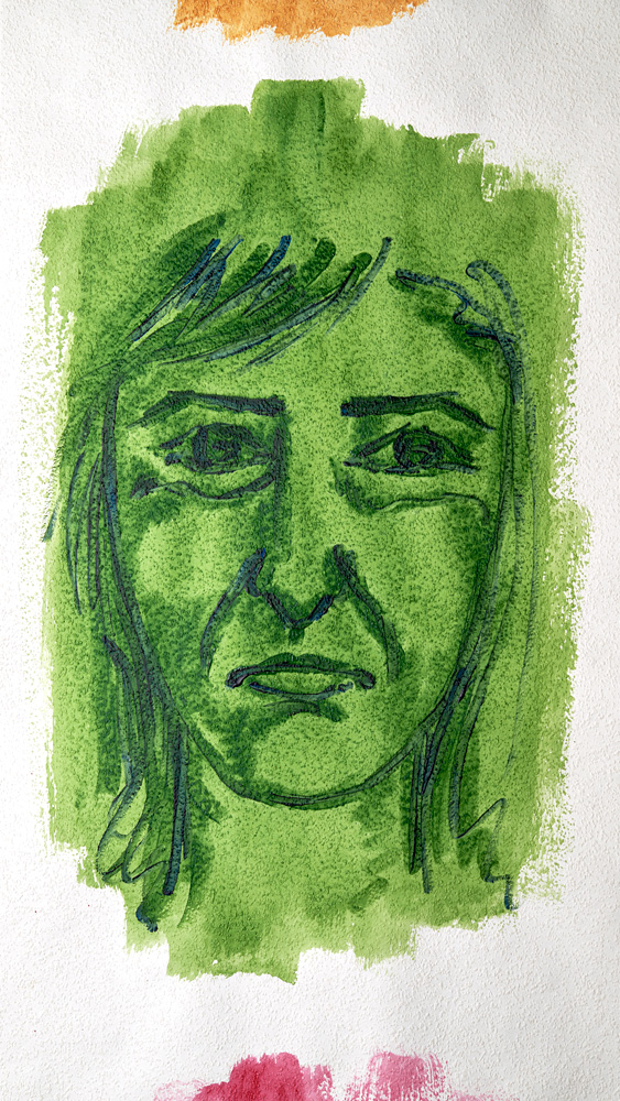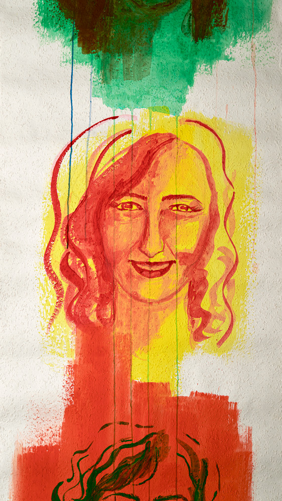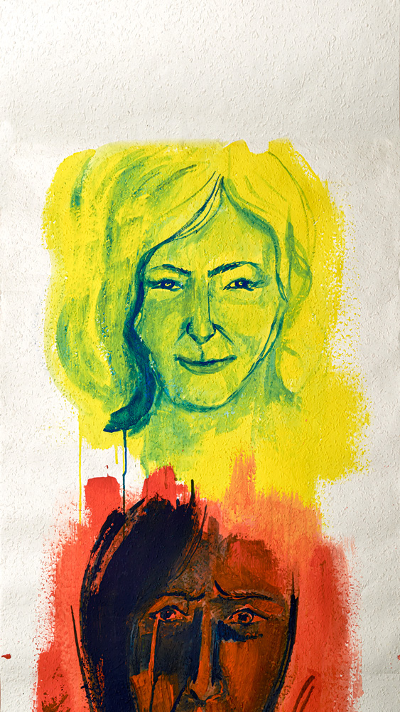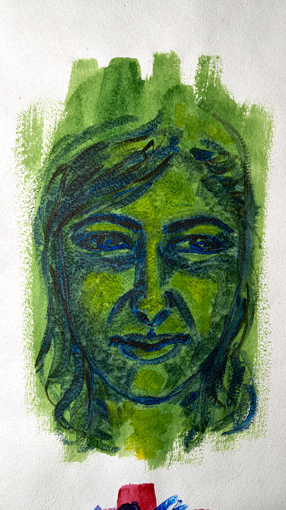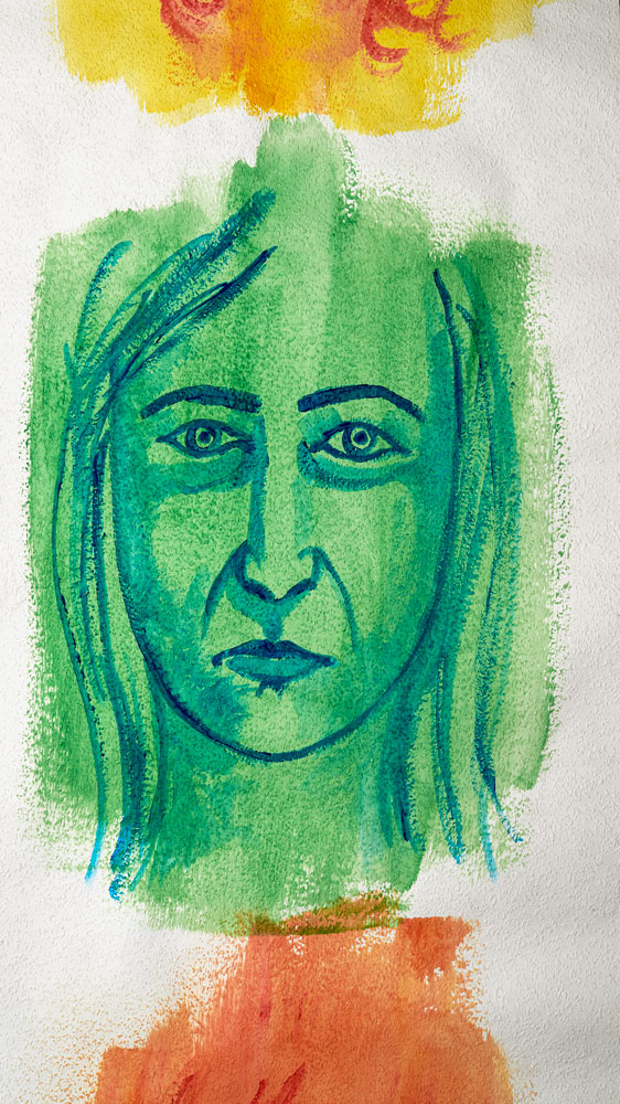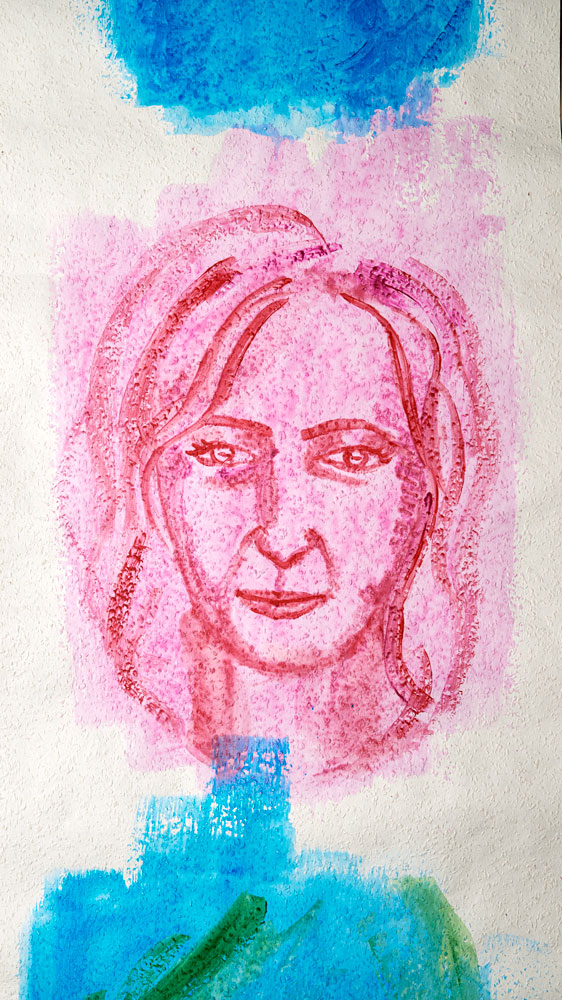 Selbstportraits auf Tapetenrolle fortlaufend. Gefühlsportraits: während des Malens hat sich das Gefühl manchmal verändert oder transformiert. Es konnte gesehen werden und durfte da sein.